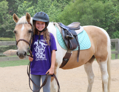 Since 1954, the purpose of Valley View Ranch has been to help each rancher have the full opportunity of horsemanship through instruction, time in the saddle on trails, and the care and responsibility of having her OWN camp horse, all a'top beautiful Lookout Mountain. We offer several riding programs and encourage each camper to participate in all of them: English and Hunt Seat; Western Stock Seat and Barrels (Gymkhana); Trails, and Vaulting. Each girl can spend as much time as she likes with her favorite horse during her stay. Ranchers will find the facility comfortable, safe, and spacious. Located on 600 acres of lush pastures, wooded trails, and panoramic views. Enrollment is limited to 50 girls and is open to ages 8-17.